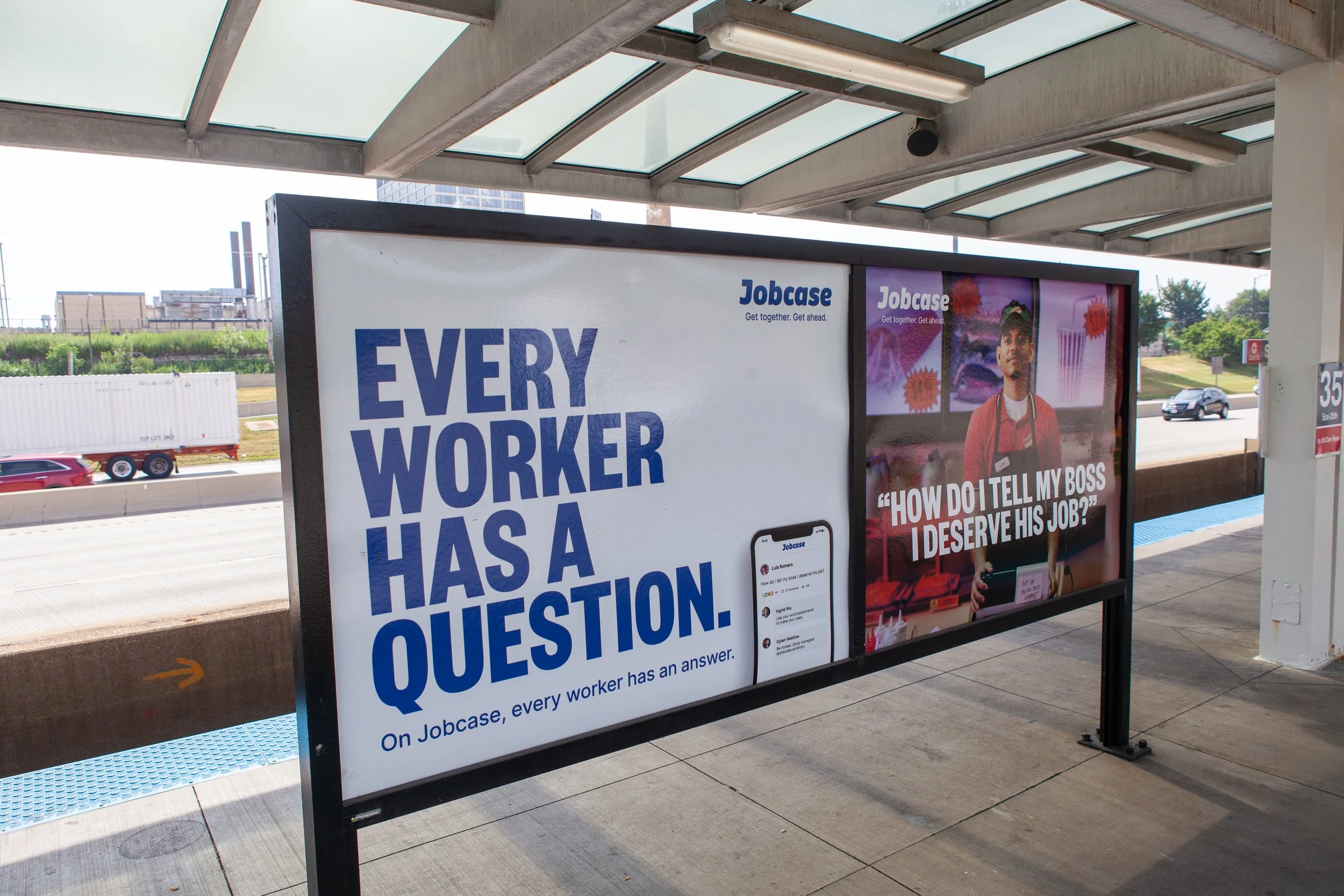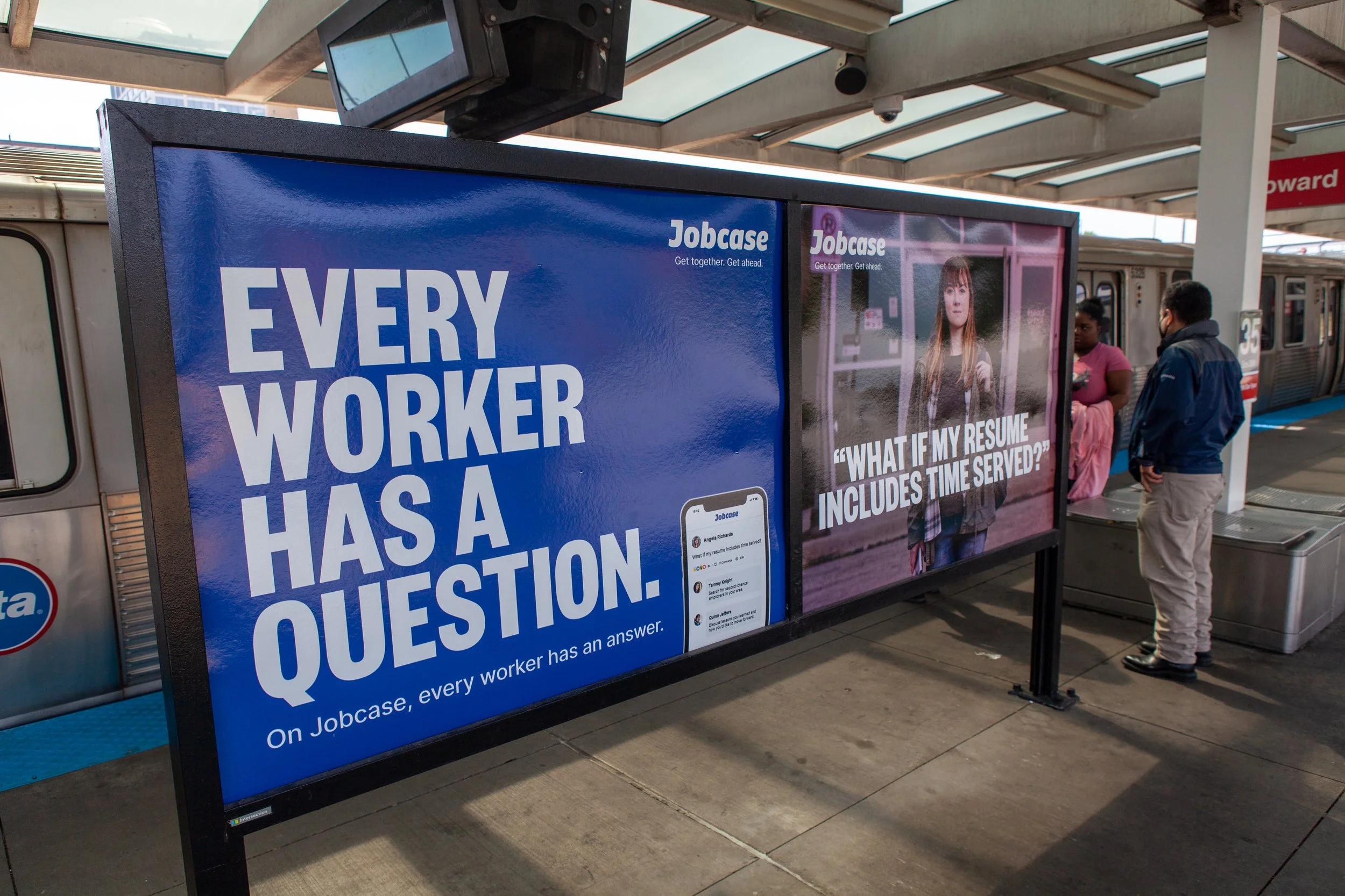 Transit station takeovers showcased how Jobcase brings together workers with questions with ones that have answers.